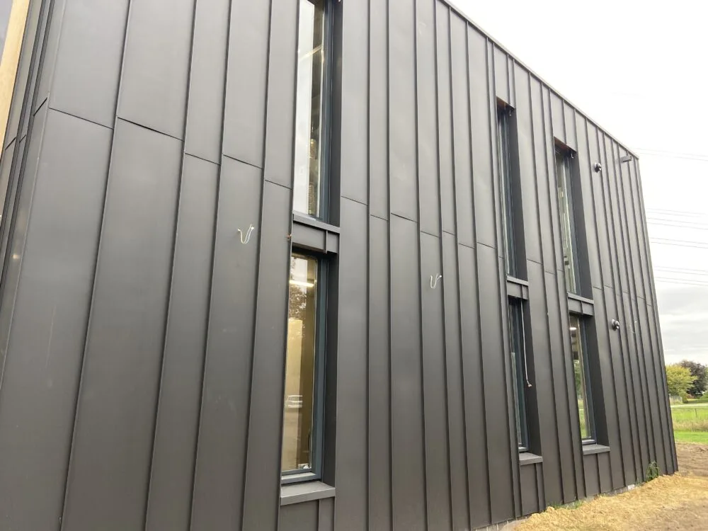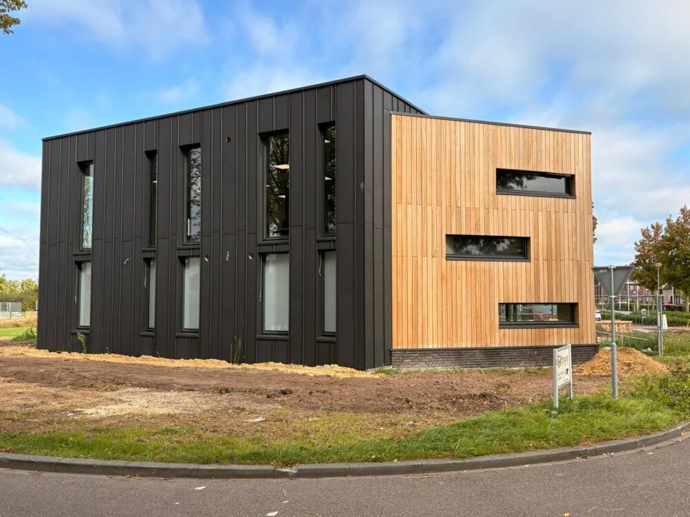 Nieuwbouw fysiopraktijk op een markante hoeklocatie nabij MFC Melderslo. Het volume is strak vormgegeven en herkenbaar door de krachtige combinatie van zinken bekleding waarbij het hout element is geintergreerd in het geheel. Op de begane grond zijn drie comfortabele behandelkamers gerealiseerd met veel daglicht en een rustige uitstraling. De eerste verdieping biedt ruimte aan een moderne E-Gym voor training en revalidatie. Grote, zorgvuldig geplaatste raamopeningen zorgen voor transparantie en privacy tegelijk. Het gebouw is duurzaam opgezet met een efficiënte indeling en energiezuinige installaties voor een toekomstbestendige praktijk.