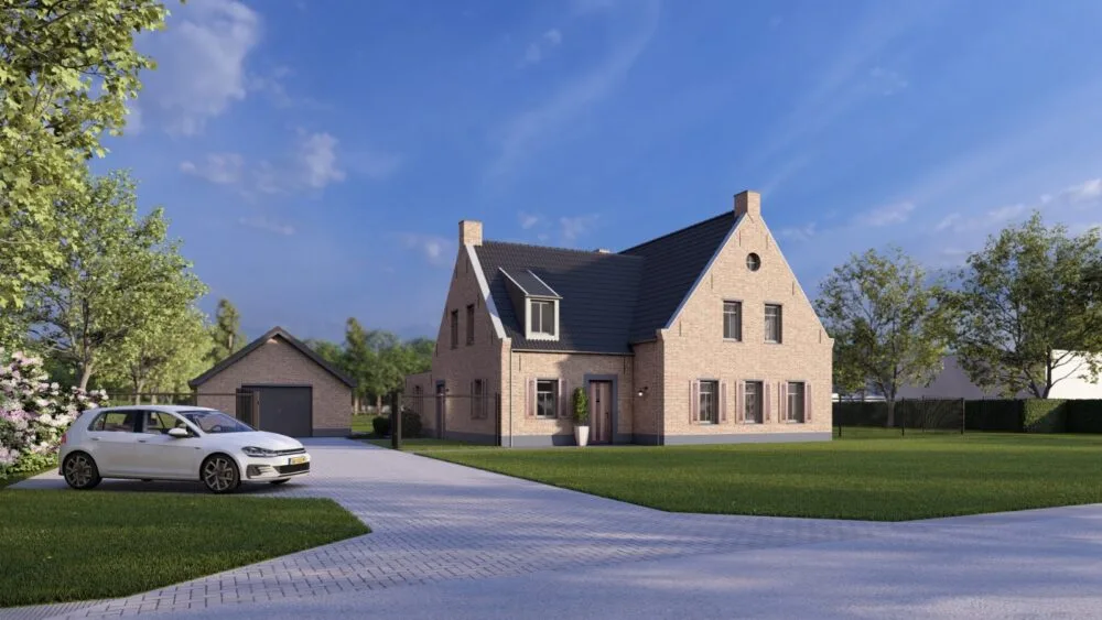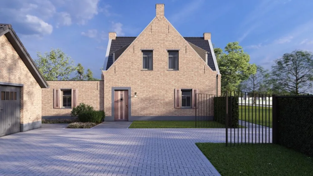 De bestaande woning is gesloopt en vervangen door een nieuwbouwwoning in uitgesproken Kempische stijl. De traditionele hoofdvorm met hoge kap en kenmerkende topgevels zorgt voor een tijdloos, landelijk silhouet. In het metselwerk is veel aandacht besteed aan ornamenten, detaillering en ambachtelijke accenten die de gevels karakter geven. Elementen zoals rollagen, gemetselde sierdetails en zorgvuldig geplaatste raamopeningen versterken de rijke uitstraling. Met moderne isolatie, energiezuinige installaties en een toekomstgerichte opbouw is de woning daarnaast duurzaam en comfortabel gerealiseerd.