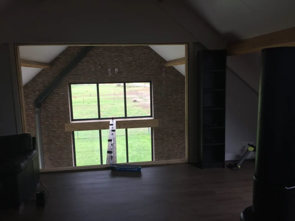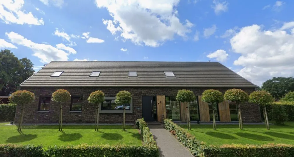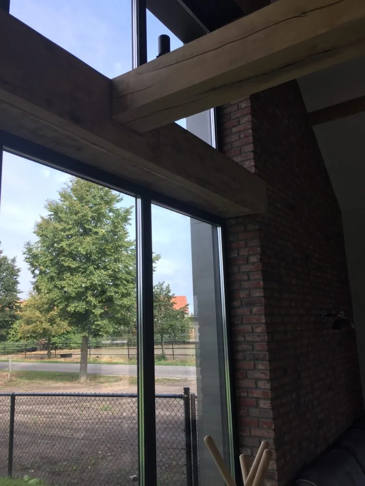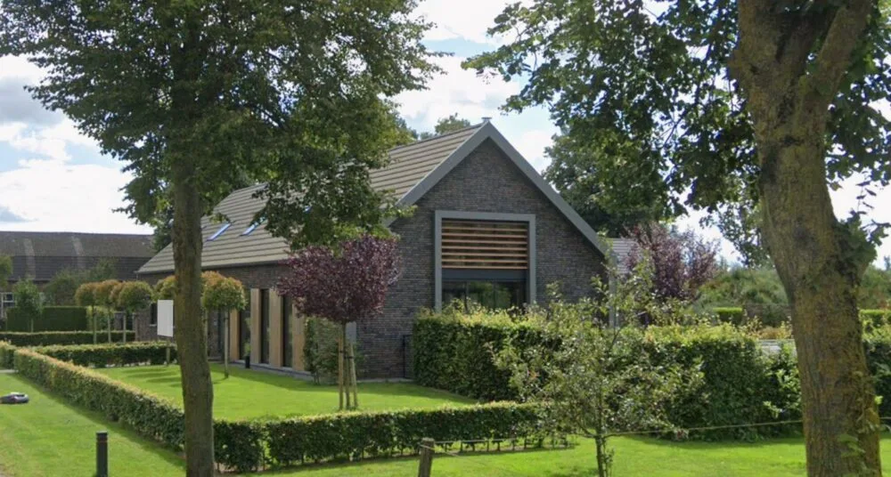 Deze moderne schuurwoning heeft een rustige en tijdloze uitstraling. Het donkere metselwerk wordt gecombineerd met houten accenten en zinken details. De zinken omkadering van de kozijnen zorgt voor een strak en verzorgd geheel. De grote glaspartij aan de kopgevel brengt veel daglicht en verbindt binnen met buiten. Zo ontstaat een heldere, duurzame woning met aandacht voor detail en omgeving.