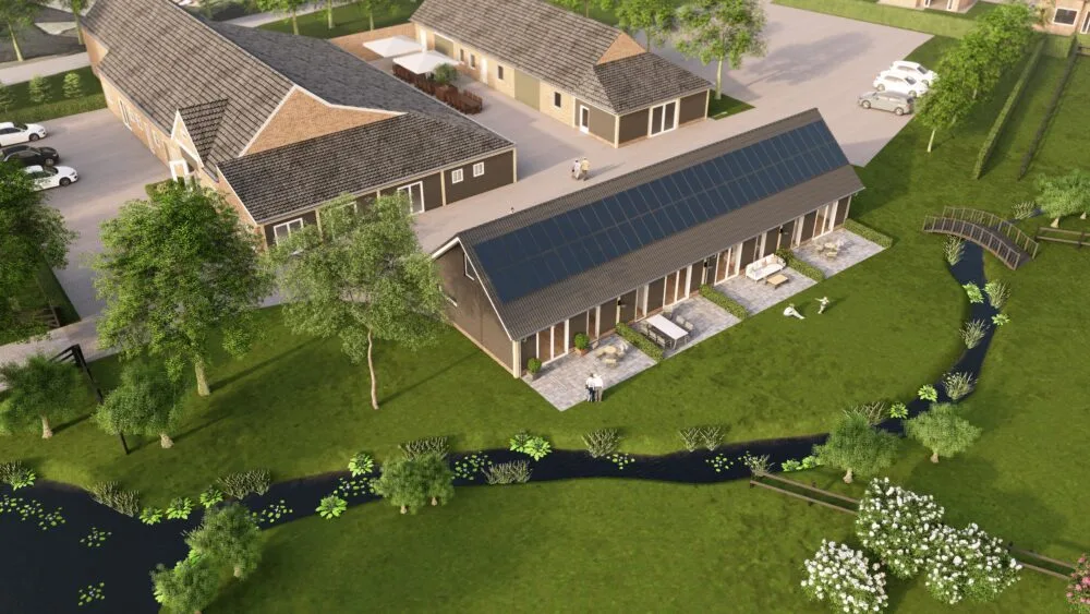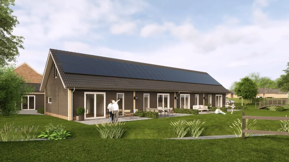 Bij Hoeve Braamhorst zijn vier zorgwoningen gerealiseerd met een eigentijdse landelijke architectuur die zorgvuldig is afgestemd op de bestaande hoeve. De heldere kapvormen, ingetogen detaillering en warme materialisering sluiten aan bij het erf en versterken het karakter van de plek. De woningen zijn grotendeels uitgevoerd in duurzame houtbouw en stralen rust en kwaliteit uit. Alle voorzieningen bevinden zich op de begane grond, waardoor de woningen volledig gelijkvloers en toekomstbestendig zijn ingericht. Grote raamopeningen zorgen voor veel daglicht en een prettige verbinding met het omliggende groen.