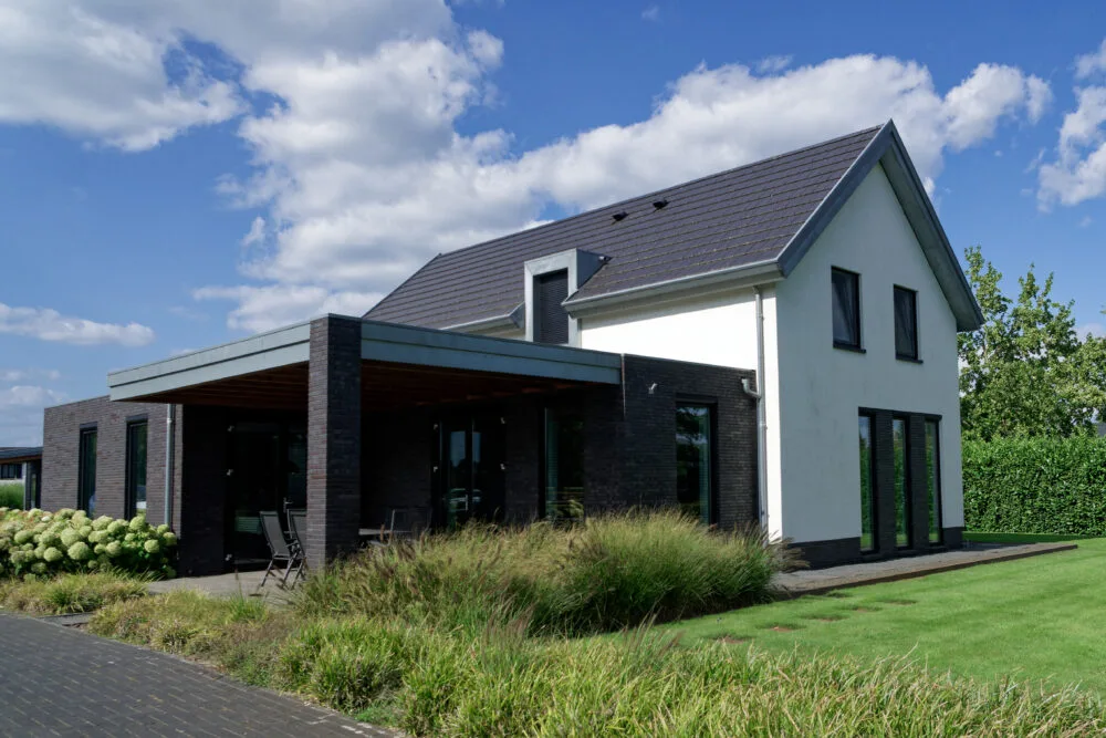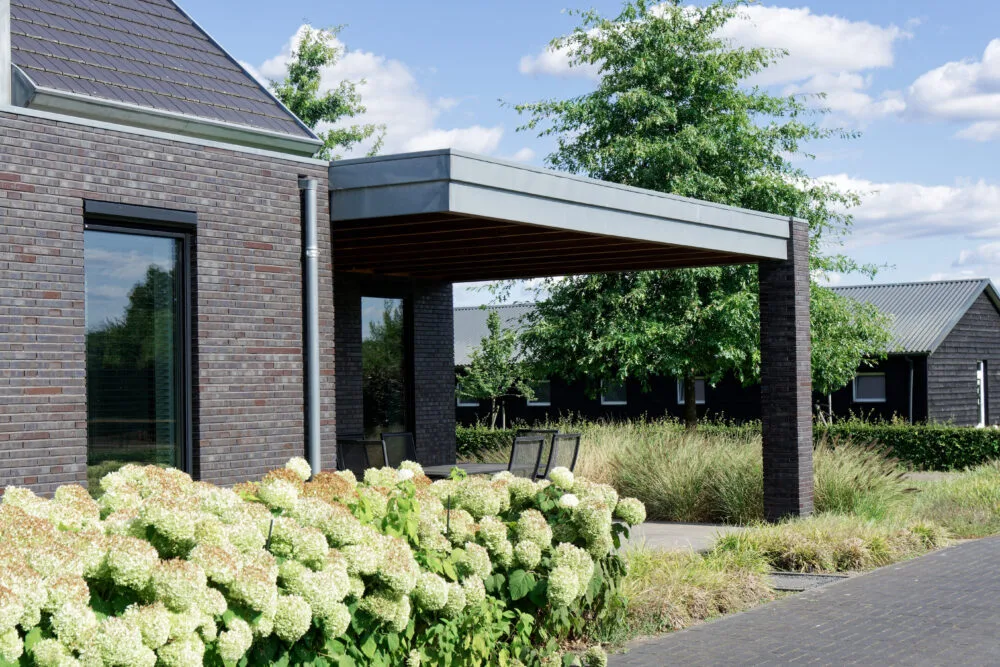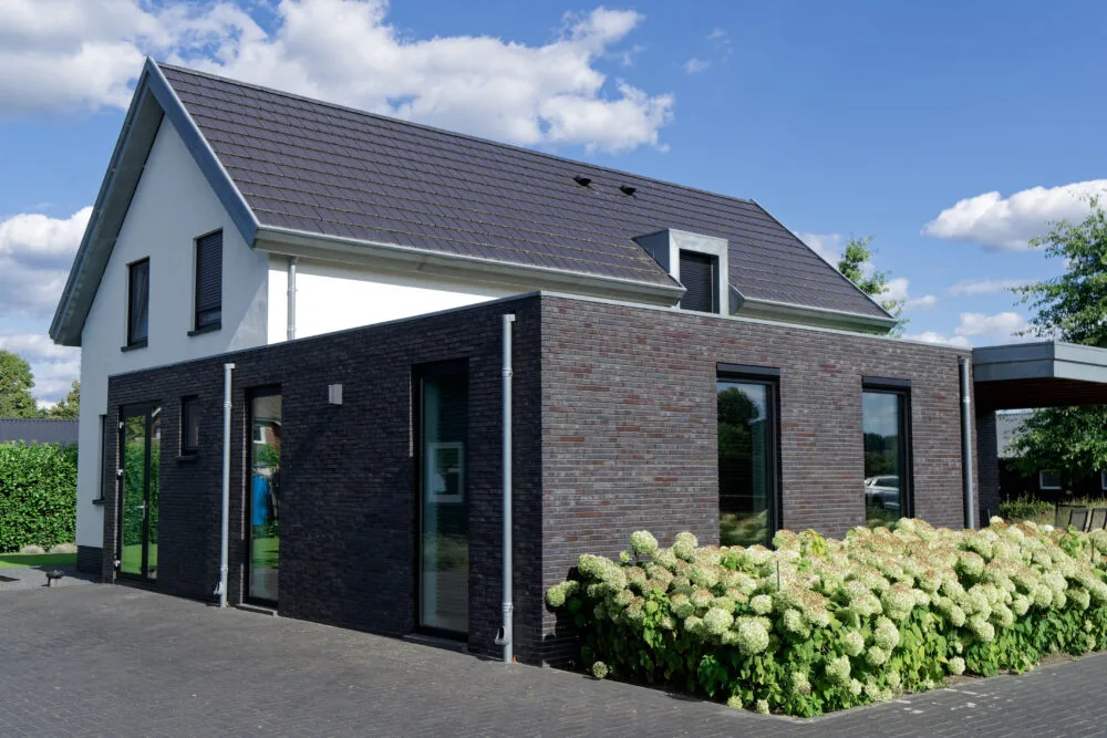Deze woning is volledig gerestyled, verduurzaamd en voorzien van een eigentijdse uitbreiding, waarbij de bestaande kap als herkenbaar volume behouden is gebleven. De nieuwe aanbouw is uitgevoerd als strak, laag bouwdeel in donker metselwerk, waardoor een duidelijk contrast ontstaat met het hoofdgebouw. Grote gevelopeningen en slanke kozijnen zorgen voor veel daglicht en versterken de verbinding met de tuin. In de detaillering is zorgvuldig aangesloten op de bestaande architectuur, met aandacht voor rustige lijnen, dakranden en materialisering. Door de heldere opbouw van volumes ontstaat een moderne met een herkenbare hoofdvorm en een ingetogen uitbreiding. Zo is de woning getransformeerd tot een frisse en toekomstbestendige woonomgeving met een hoogwaardige uitstraling.